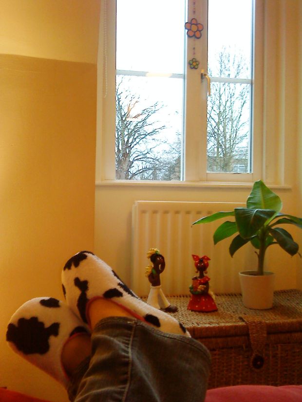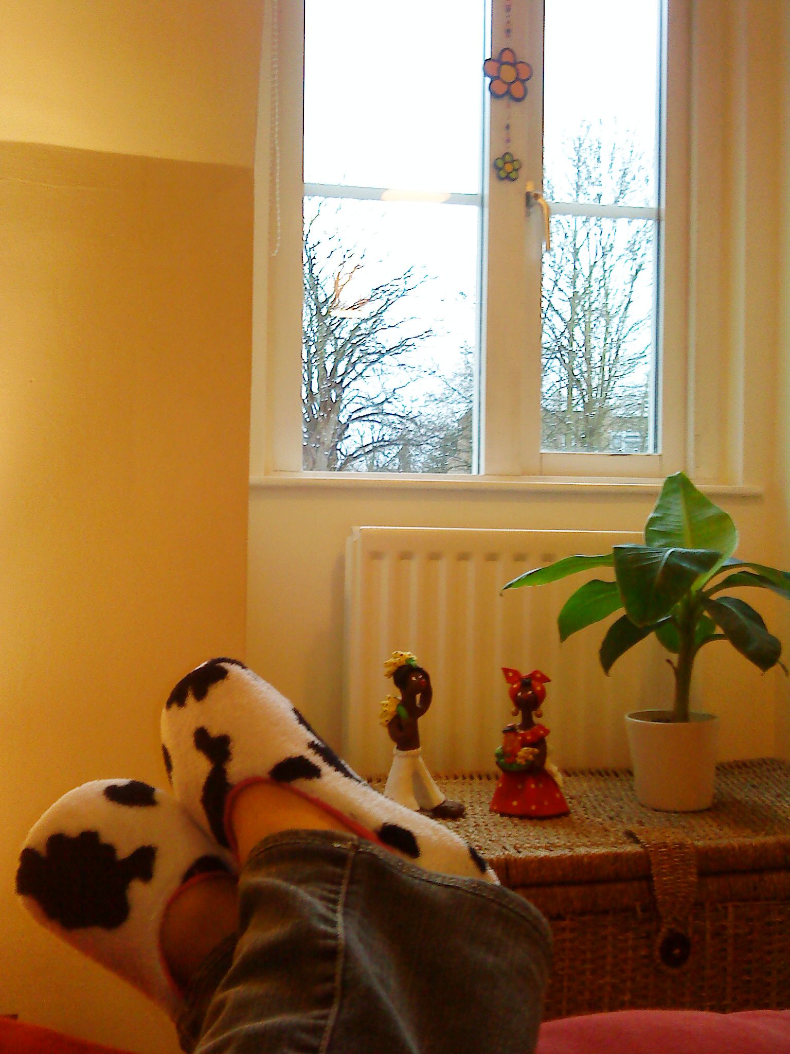O que eu fiz? Item 2. Limpei o banheiro. Só. O resto ficou esperando na medida em que minhas pantufas de vaquinha esquentavam meu pé. O dia foi alternado entre sofá, twitter, televisão e cama. Não necessariamente nessa ordem.